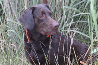 Wagg’n Tails Handsome Samson “Sam” earned the American Kennel Club title of Senior Hunter. Sam is a dog of intelligence, high spirit, sound temperament and a driving desire to please. He is fine hunting companion, able to remain energetic through an entire day of hunting in the field. When Sam is not in the field he is an excellent family dog that enjoys evenings with his family before retiring to his kennel. Sam is the son of “Shady Grove’s Ragun Cajun” and grandson of the Legendary “Barracuda Blue”. Cuda is the all time high point, all-age, Chocolate Labrador in the history of the American Kennel Club. Cuda earned Field Champion, Amateur Field Champion, Canadian Field Champion and Amateur Canadian Field Champion titles. For information on Sam’s grandfather, check out the following web site.