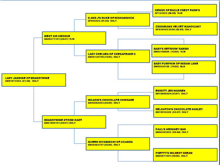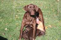 Lady Jasmine of Brandywine “Jazz” is the matriarch of Wagg’n Tails Kennel. Jazz is intelligent dog with sound temperament and a strong desire to please. Jazz was trained as a field dog at Shady Grove Kennels, home of “Rajun Cajun”. She is an excellent field companion with a superb nose that finds that elusive bird while maintaining her can do attitude. Jazz is a doting mother to her pups and step mother to the pups of our other dogs. When Jasmine is not looking for the next pheasant, she is a loyal family dog and protector of the home front. Very little escapes her vigilance. Jazz enjoys evenings in the den with her family before retiring to her kennel.