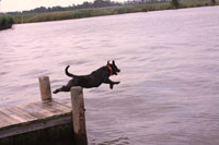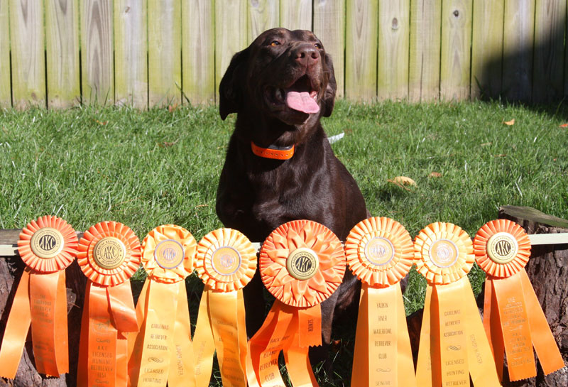 Wagg’n Tails Handsome Samson “Sam” earned the American Kennel Club title of Senior Hunter. Sam is a dog of intelligence, high spirit, sound temperament and a driving desire to please. He is fine hunting companion, able to remain energetic through an entire day of hunting in the field. When Sam is not in the field he is an excellent family dog that enjoys evenings with his family before retiring to his kennel. Sam is the son of “Shady Grove’s Ragun Cajun” and grandson of the Legendary “Barracuda Blue”. Cuda is the all time high point, all-age, Chocolate Labrador in the history of the American Kennel Club. Cuda earned Field Champion, Amateur Field Champion, Canadian Field Champion and Amateur Canadian Field Champion titles. For information on Sam’s grandfather, check out the following web site.